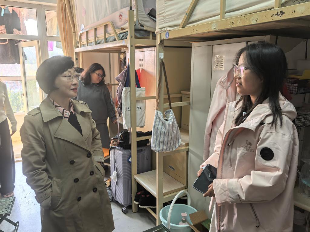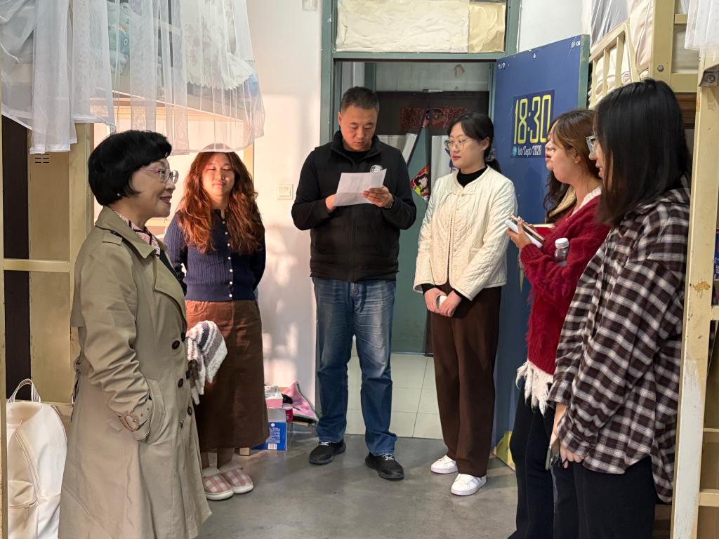 学院领导和老师深入学生寝室开展安全检查,叮嘱学生注意消防安全和用电安全,遵守用电规范并妥善使用充电设备。同时还关切询问新生气候适应情况,提醒注意健康饮食与日常锻炼。郝利群书记另就英语学习方法给予细致指导。