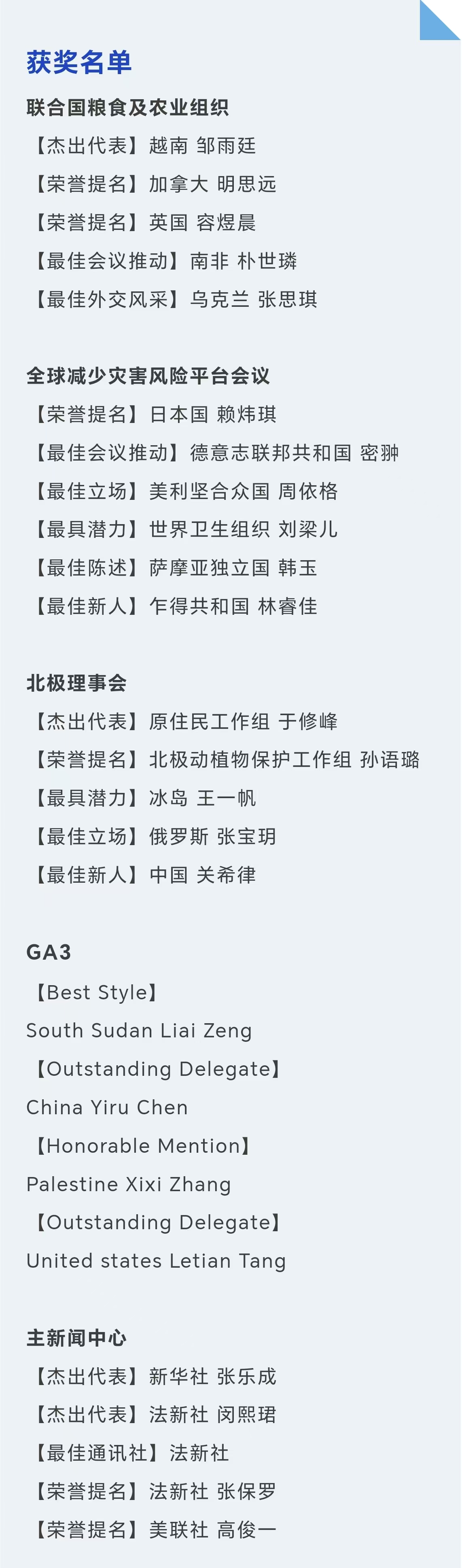 11月2日闭幕式上,副秘书长窦方廷向所有三天以来辛苦工作的组委、主席团成员、代表以及志愿者都致以诚挚的谢意。各委员会的主席团成员致辞并颁发奖项,副秘书长杨澄琳宣布大会顺利闭幕。