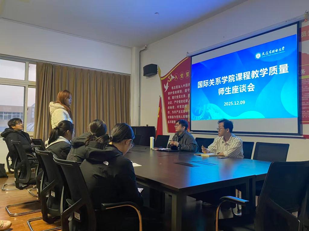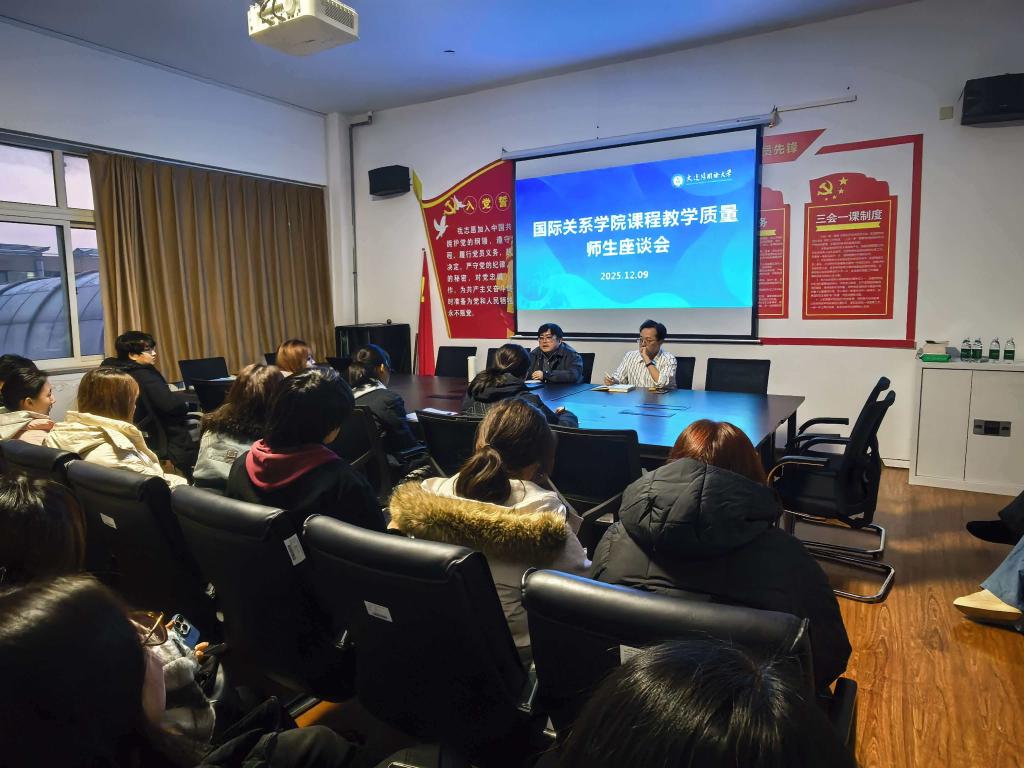 为深入了解本学期教学实际情况,进一步提升课程教学质量,2025年12月9日,国际关系学院副院长王琳、国际事务与国际关系教研室主任韩雪亮作为教师代表,召集全院本科生与硕士研究生代表于学院会议室举行课程教学质量专题调研座谈会。会议围绕本学期教学过程中的各项环节展开交流,旨在通过师生直面沟通,真实反馈、共同优化教学安排。