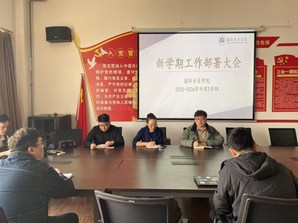 3月11日,国际关系学院召开新学期工作部署大会,全面安排本学期重点任务,并就教学、科研、研究生培养与学院巡查整改等专项工作作出系统部署。学院领导班子及全体教职工参加会议。