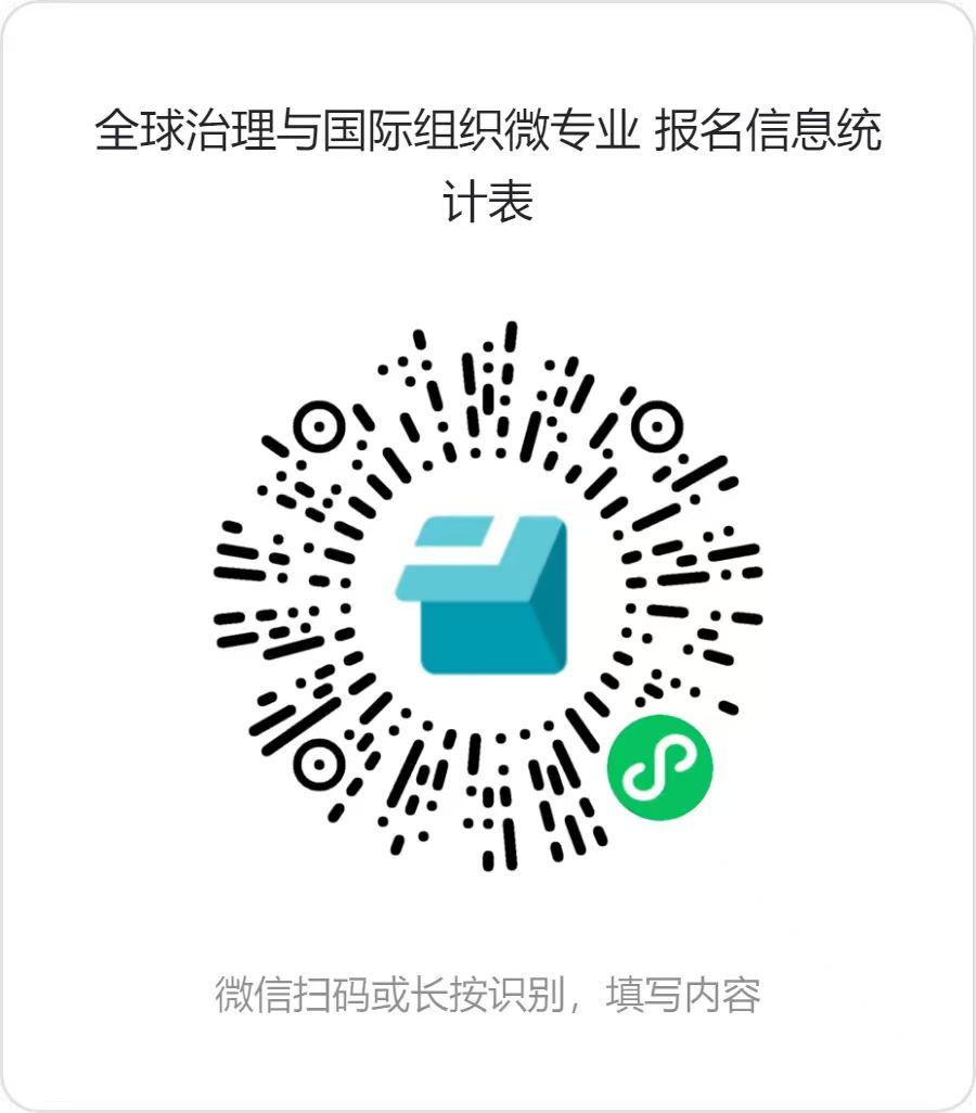 请有意申请选修全球治理与国际组织微专业的同学扫描下方二维码进行报名。报名结束后,老师联系各位同学。