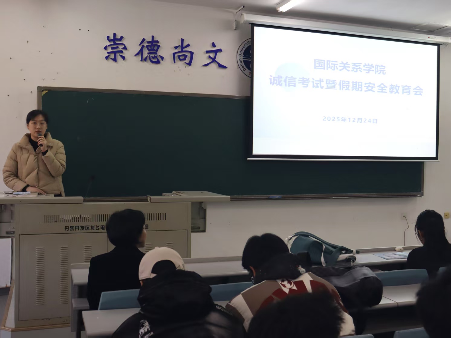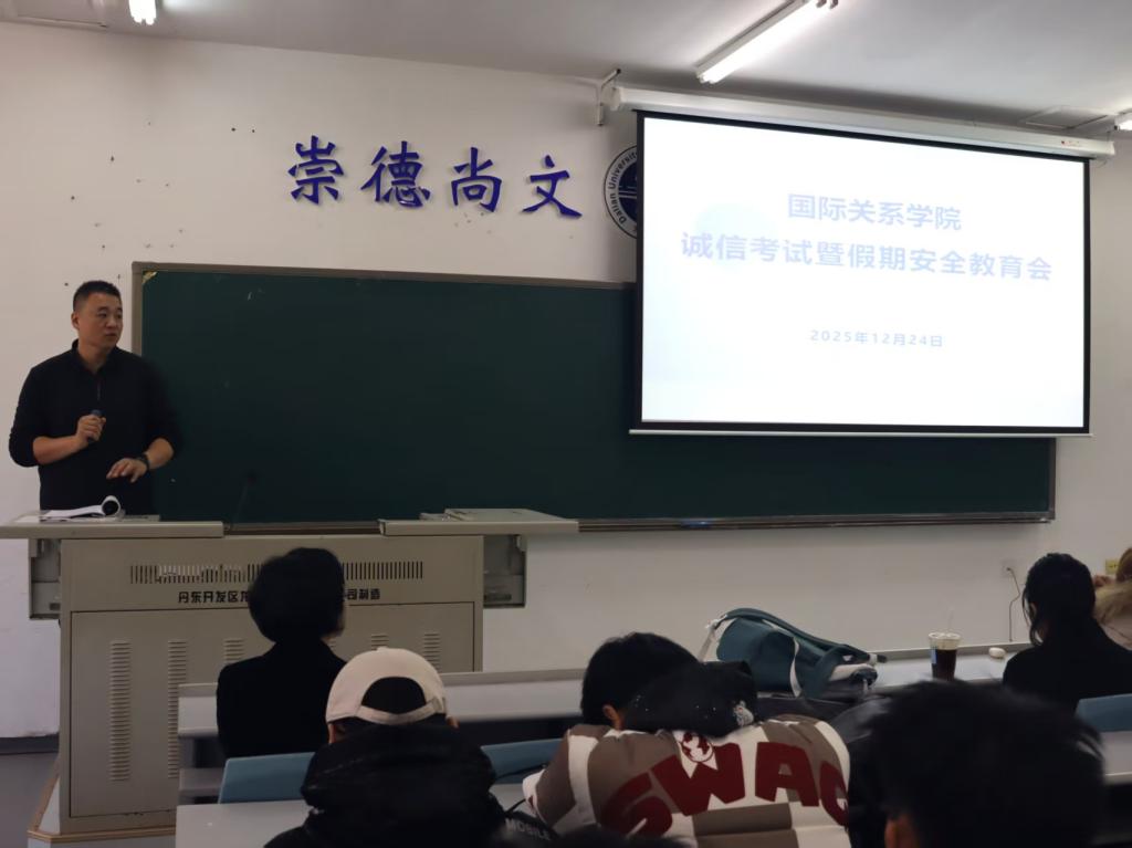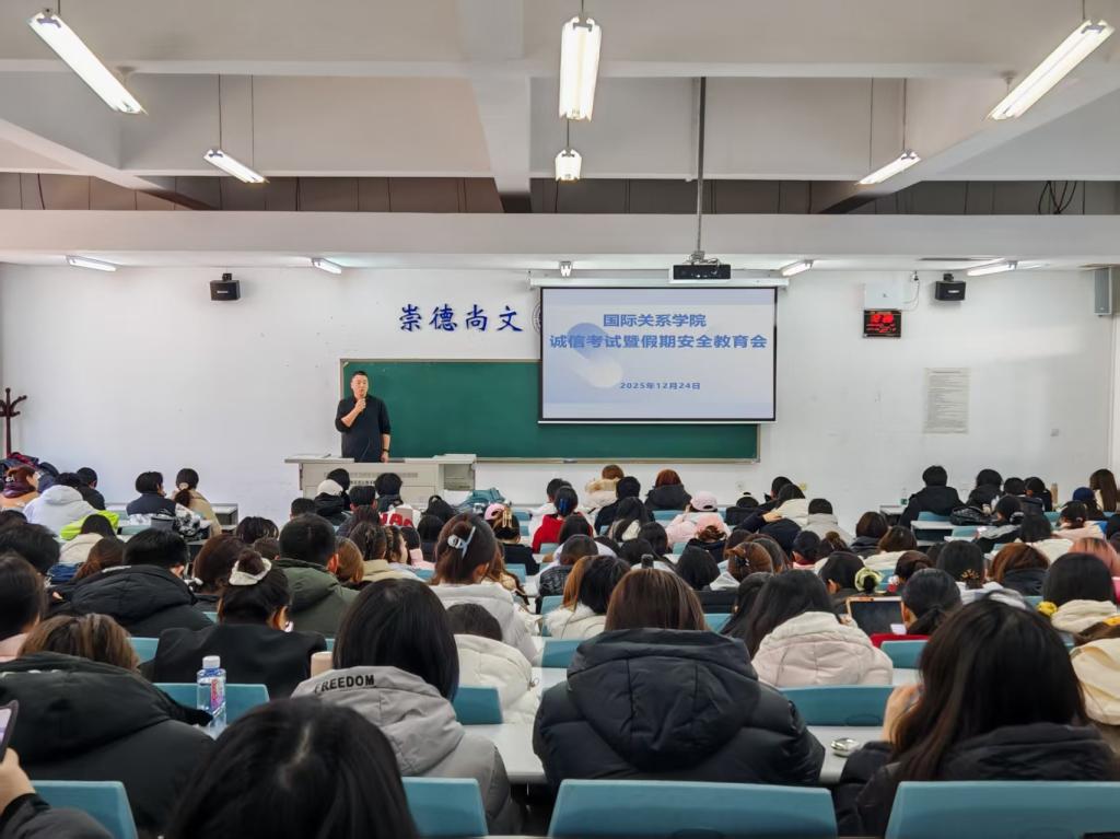 12月24日中午,国际关系学院于明德楼102教室举办全体学生大会。辅导员侯培岩、毕如一以及国际关系学院全体学生参加本次会议,会议由辅导员侯培岩主持。