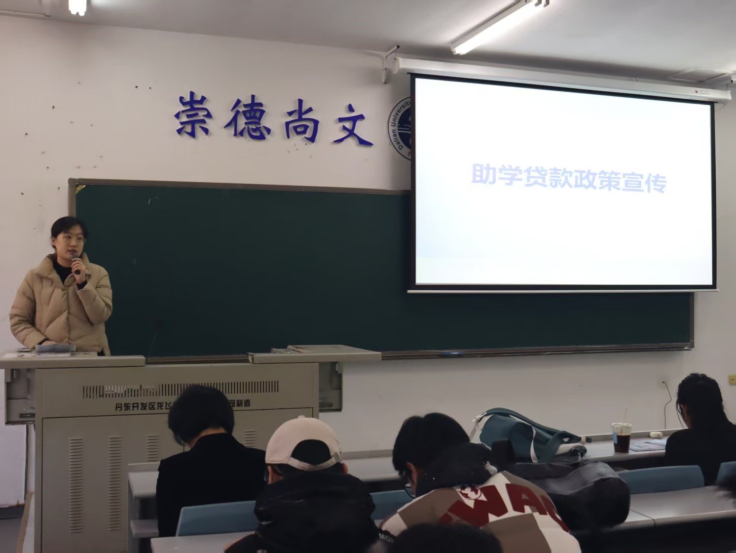 随后毕如一就假期安全事项作出提醒,要求同学们严守寝室规定,杜绝违规电器使用,筑牢消防安全防线;出行做好保暖、谨防感冒,注意交通安全;假期居家谨慎用火用电;增强反诈意识,规范网络言论。同时建议大家合理规划寒假时间,积极参与社会实践与实习,为职业发展积累经验。她还结合具体事例对助学贷款的政策和优势进行详细介绍。
